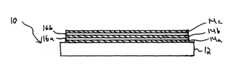 Turning now toFIG. 1, amedical implant10 is illustrated including asubstrate12, with multiple polyelectrolyte layers disposed thereon. The polyelectrolyte layers have alternating charges, so that if thesubstrate12 has a negative charge, layers14a,14band14cwould include a polycation and possess a positive charge, and layers16aand16bwould include a polyanion and possess a negative charge. Conversely, if thesubstrate12 has a positive charge, layers14a,14band14cwould include a polyanion and possess a negative charge, and layers16aand16bwould include a polycation and possess a positive charge. As noted above, a bioactive agent (not shown) possessing a charge opposite that found on the surface of polyeletrolyte layer14cmay be attached thereto by electrostatic attraction. Moreover, as noted above, bioactive agents (not shown) may also be attached to intermediate layers14a,14b,16aand16b, where the bioactive agent has a charge opposite the charge of the polyelectrolyte layer to which it is applied. Alternatively, layers comprising the first or second polyelectrolyte may further include a bioactive agent disposed therein.