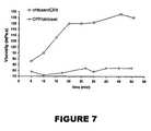 As shown inFIG. 7, there is an increase of viscosity in the case of the oxidized collagen/chitosan mixture wherein the area of stability was reached for 30 minutes at a pH of 4.7. On the other hand, only a slight increase of viscosity is observed in the case of the native collagen/chitosan solution. Therefore, the difference of the viscosity evolution against time can be attributed, partly, to the formation of a chemical crosslink between oxidized collagen and chitosan. In fact, the low viscosity increase in the case of chitosan/native collagen mixture is due to the ionic complex because the two components exhibit a high charge of density.