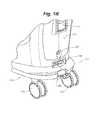 FIG. 1B is a perspective view of a portion ofsystem10, on aside111 of the cabinet structure, which is in proximity towheels121,122.FIG. 1B illustrates a lever orpedal125, which is located for activation by a foot of the person, who grasps handle14 to maneuversystem10. In a neutral position,pedal125 allowswheels121,122 to rotate, and, if embodied as casters, to swivel freely.Pedal125 may be depressed to a first position which prevents a swiveling ofwheels121,122, according to those embodiments in whichwheels121,122 are casters, and may be further depressed to brakewheels121,122 from rolling and swiveling, upon reaching a desired location. According to some embodiments, braking may be designed to slowsystem10, for example, when rolling down an incline, and, according to yet further embodiments,system10 may include a motor to power movement thereof.