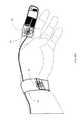 FIG. 5A represents a generalized view of an exemplary oxygen saturation sensing device design indicating where a respiratory therapist marks the signal cable at a crossing point formed when the cable meets a patient's wrist.