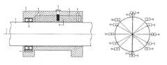 The bearing shown inFIG. 1 can also be a mechanical bearing with magnetic compensation unit, which is not claimed here. In this case thebearing8 shown inFIG. 1 would be a conventional antifriction bearing (e.g. ball bearing or roller bearing) and provision for a first magnet device to center the shaft would not be required. Even with a simple stationary magnetic field of the second magnet device (permanent magnet2), which reduces the weight load acting on the bearing, a longer operating life of the bearing can thus be achieved by reducing the load thereon. This can be advantageous in particular if the replacement of bearings is very difficult and cost-intensive (e.g. offshore wind farms).