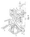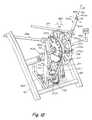 Top bearings36aand36breceiving the axle orcrankshaft32 are secured to a pivotable mounting bracket orarm38 such that as pivotable bracket orarm38 is pivoted forwardly and rearwardly,shaft32 and its associatedwheel200 is pivoted forwardly and backwardly together with bracket orarm38.