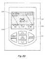 FIGS. 14-21 illustrate auser interface component20 of an apparatus according to the invention that serves to facilitate certain forms of cardiovascular training that have recently emerged: circuit training and interval training. Both workout techniques use a cycle of brief, high energy activity, followed by a rest period of similar length, as the fundamental building block for all workout routines. Interval training consists of a user or group of users repeatedly performing cycles of a single exercise, alternating between exercise and rest, while maintaining some form of timing scheme or plan. Circuit training consists of a user or group of users consecutively performing cycles of different exercises that each exercise different muscle groups, “circling” from one exercise station to the next while maintaining some form of timing scheme or plan. At any given step, different users with different body sizes and fitness levels will operate the same given device, making ease of use and speed of configuration important factors for any circuit training device.