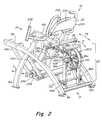 The forward linkages orlegs26aand26bare movably connected to drivelinkages28aand28b; and the drive linkages are in turn connected to the resistance mechanism (illustrated inFIGS. 2A, 3 and 4 and described below) concealed by ahousing30. In other embodiments, thedrive linkages28aand28bcan be connected directly to the foot supports24aand24b. Additionally, foot supports can be on or integral to either the forward linkages or to the one or more linkages joined to the frame.