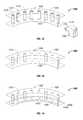 FIGS. 10A and 10B show yet another embodiment of aguide block1000 according to the present disclosure which includes a nested arrangement of segments1005a-1005chaving interlocking mechanical interfaces. More particularly, each segment, e.g.,segment1005b, includes a first angled side face offacet1026ahaving a first angle α1 relative to therear surface1017aof a distallyadjacent segment1005aand a second angled side face offacet1026bhaving a second angle α2 relative to therear surface1017aof a distallyadjacent segment1005a. This arrangement of angles allows the guide block1000 a particular range of movement in a transverse direction depending upon the bend direction “B” or “B′” of theguide block1000.FIG. 10B shows a similar arrangement wherein the top andbottom facets1033aand1033b, respectively, ofsegment1005binclude different angles β1 and β2 relative to therear surface1017aofsegment1005a. This arrangement of angles allows the guide block1000 a particular range of movement in a vertical direction depending upon the bend direction “V” or “V′” of theguide block1000.