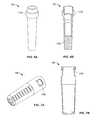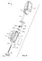 FIG. 28bshows thelatching arm3100 in the intermediate ‘safety latch releasing’ position, in which inwardly protrudingnib94aofflexible locking arm94 ofcassette unit housing20 has been pushed in (as thecassette unit1 is inserted intocassette unit holder75 of drive unit70) and is accordingly pushed up against raisedcentral portion3104 of theflexible latching arm3100. Theflexible latching arm3100 therefore flexes inwards (i) to moveend finger3106 into non-return latching engagement withcatch3108; and (ii) to move innersafety latching protrusion20aofcassette unit housing20 out of safety blocking interaction withproximal rib3105 of theflexible latching arm3100. Movement of the alternativeinner housing sleeve330 relative to thecassette unit housing20 is as a result now possible.