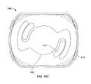 In another embodiment shown atFIGS. 16ato 16e, an alternative end-cap spring145 is constructed from metal. Whilst the detailed shaping of this alternative end-cap spring145 varies from that of the end-cap spring45 ofFIGS. 15ato 15dits essential function is the same. Therear end146 of the alternative end-cap spring145 defines an essentially flat profile, which allows it to rest a small distance away from the inner end wall of the end-cap40. This alternative end-cap spring is held in place by the interaction of the inner side wall of thecassette unit housing20 withclips149 on the side wall of the alternative end-cap spring145.Sprung arms147 extends forwards in part-spiral fashion about acentral ring aperture148. Within the cassette unit, thisring aperture148 is sized and shaped to fit about theforward skirt42 of the end-cap40 and when theplunger slaving part60 is engaged with the end-cap40 (e.g. at a position corresponding to that shown atFIGS. 2 and 13) about the outercircumferential wall62 of theplunger slaving part60.