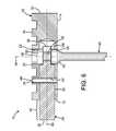 In the current embodiment, theshoulder56 of therotating spindle46 can have a radius of 0.10. Thegroove62 can be 0.21 inch wide and can result in a neck thickness of 0.22 inch. The bottom and topcylindrical flanges58,60 can each have a thickness of 0.135 inch and a diameter of 0.375 inch. The rotating spindle can have a total length of 2.5 inches. Thecentral bore52 can have a diameter of 0.1968 inch, a total depth of 0.78 inch, and a smooth portion adjacent to the bottom50 below the internal threadedportion54 with a length of 0.225 inch. The internal threaded portion can have a pitch of 8-32 UNF, 8-36 UNF-2B, or any other suitable thread size.