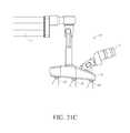 AU-shaped channel10021 is defined on the upper surface of thecable support arm10009. Sidewalls define part of theU-shaped channel10021. Electronics such as PC boards for signal conditioning of CMOS sensors, EM sensors, and LED electronics can be included in thedistal arm portion10017. Such electronics may include, for example, amplifiers, A/D converters, and LED controllers. Thedistal arm portion10017 can telescope to extend further from theelbow10019. For example, in some embodiments, an adjustment knob10027 can be provided that sets the telescoping position of thedistal arm portion10017 as illustrated inFIG. 58.