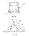 FIG. 28 (prior art) is a photograph of the externally located end of a typical gastrostomy feeding tube that is adjusted with a flange that slides along the length of the tube and is maintained in position by frictional force between the flange and the tube.