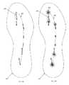 FIGS. 29A and 29B are plan views of outsole plates for left and right shoes of another athlete based on measured performance data while running round a corner portion of a track, in accordance with one embodiment of the invention;