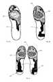 In one embodiment thecleated traction elements850 may be substantially circular in cross section, as shown, for example, inFIG. 59E. Alternatively, thecleated traction elements850 may be ribbed to produce a plurality of extensions out from a central core, as shown, for example, inFIG. 59D (which showscleated traction elements850 having a 3-sided ribbed structure). In alternative embodiments any appropriate cross-sectional cleat shape may be utilized including, but not limited to, elliptical cleats, bladed cleats, or triangular cleats. These cleats may or may not be tapered and may extend at substantially 90 degrees or at an acute angle from the base plate.