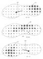 FIGS. 14A through 14C show the resulting performancemetric vectors235 calculated using the data ofFIGS. 13A through 13C, with the pressure data at each point indicated by thecircles225, with the length of thevectors235 representative of the magnitude of the vector.FIGS. 15A through 15C shows the performancemetric vectors235 at the three shown time steps with all other information removed from the figures. Once the performancemetric vectors235 have been calculated for each time step, the final performance metrics at each location over the sole can be determined by, in one embodiment, summing the individual Performance Metric Vectors at each location for each time step according to the following function: