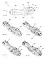 In one embodiment, as shown inFIGS. 24A to 25E, the sole plate including the traction elements can be formed as a plate-like structure with traction elements extending from the plate and voids or cavities formed within certain portions of the plate. In an alternative embodiment, as shown inFIGS. 26A to 31B, the sole plate can be formed as a plurality of traction elements with a web-like structure of interconnection elements (e.g., bar415 connecting the traction elements. In further alternative embodiments the plate can be formed in any appropriate manner having the necessary structural requirements to meet the performance demands of the wearer.