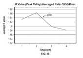 The averagedR values2900 may be obtained from averaging the Ratio R over a predetermined time period or may be calculated from the averaged L values. As shown inFIG. 29, the averagedR values2900 fluctuate between 1.68 and 1.58 over a three minute time period.