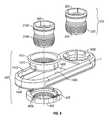Thelower portion310bof thelocking device300 comprises anoutside surface330 and an inside surface (not shown). Theoutside surface330 is shaped and configured to mate with the locking device receiving hole of thecarriage400 and/or theplate1000. Thelower portion310bcan comprisecutouts335 that are capable of compression to enable lockable mating with ribbing in the locking device receiving hole ofcarriage assembly400 and/orplate1000. Thelocking device300 comprises an aperture (not shown) that is dimensioned to receive abone screw20. The inside surface (not shown) of lockingdevice300 can comprise threading that is capable of mating with the threads of the threadedshaft25 of abone screw20.