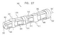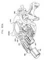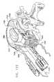 Thetool9540 is then removed andprotrusions9552 and9554 thereof automatically disengagesockets9106, leaving the band in an orientation shown inFIG. 158, with its rearward end still being retained in the region betweenend plates2024 and2025 and urged downwardly by engagement ofaperture9402 thereof bycylindrical pin9566 of tool9560 (FIG. 154D).