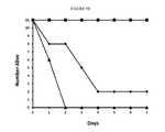 FIG. 10B is a line graph showing the number of pre-immunized or non-immunized rabbits (4-5 per group) alive after challenge with wild-type USA200 MNPE IV with 2×108bacteria per animal Rabbits were immunized three times with TSST-1 (G31S/S32P), SEC, α-toxin (H35L), β-toxin, and γ-toxin (▪) or α-toxin (H35L) alone (♦), or remained non-vaccinated (▴). Challenge organism was intravenous USA200S. aureusMNPE (2×108/2 ml volume in PBS)