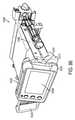 The retainingmember9504 is coupled to theshaft9534 such that rotating the retainingmember9504 also rotates theshaft9534. Also coupled to theshaft9534 is arotating cam9545. The rotatingcam9545 rotates as the retainingmember9504 is actuated (e.g., rotated between open and closed positions). When the retainingmember9504 is in the fully open position, the rotatingcam9545 and themoveable cam9537 may engage each other such that the retainingmember9504 remains in the fully open position even when a user's hand is removed from the retaining member9504 (i.e., the retainingmember9504 is in a dwelling position). That is, the rotatingcam9545 and themoveable cam9537 may engage each other with opposing surfaces that are perpendicular to an axis defined by theshaft9534.