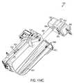 FIGS. 119A-119B shows several views of the syringe pump assembly shown inFIGS. 114A-114J to illustrate the jaw member's9508,9510 action of grasping onto aflange9517 of aplunger9519 of a syringe (e.g.,syringe9518 as shown inFIG. 114E) in accordance with an embodiment of the present disclosure.FIG. 119A shows thepivotal jaw members9508,9510 in an open position andFIG. 119B shows thepivotal jaw members9508,9510 grasping on theflange9517 of theplunger9519. As is easily seen inFIG. 119A, ramps9546 are used so that as thepivotal jaw members9508,9510 grasp onto theflange9517 of the plunger9519 (as in FIG.119B), theflange9517 is held against the plunger head assembly9516 (seeFIG. 114A) more securely.