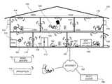 The depictedstructure150 includes a plurality ofrooms152, separated at least partly from each other viawalls154. Thewalls154 can include interior walls or exterior walls. Each room can further include afloor156 and aceiling158. Devices can be mounted on, integrated with and/or supported by awall154,floor156 orceiling158.
