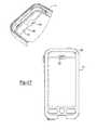 Thecase member18 may include various slots andaccess ports20 formed therein. The slots andaccess ports20 may be used to actuate various functions using buttons or switches and allow sound transmission, as will be described in more detail below. Additionally, thecase member18 may include awindow portion22 formed therein that receives ascreen member24. Thecase member18 may include sealing and locatingmaterial26 applied thereon on defined portions of thecase member18, such as about the slots andaccess ports20 to provide location for theelectronic device12 within themain housing14 and a sealing for thecase member18 as well as allow access to various buttons of the electronic device as will be described in more detail below. The sealing and locatingmaterial26 may provide shock mitigation properties for theprotective case10 for the protection of theelectronic device12 when exposed to shock and drops. In one aspect, the sealing and locatingmaterial26 may include various thermoplastic elastomers such as a TPE-TPU material or may be formed of other materials such as rubbers including silicone.