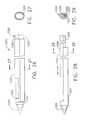 FIG. 20 is a right side view in elevation taken in longitudinal cross section of an assembled imagingmarker obturator, including a solid stylet having a lateral notch and encompassed by a penetrating sheath with a molded, asymmetric piercing tip;