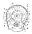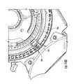 FIG. 14A is a bottom, cutaway perspective view of the inhaler ofFIG. 10A illustrating the dosedisk indexing mechanism500. Thelower disk40 of thedose container assembly20 includes first and second sets of innerperimeter gear teeth502,504 in vertically stepped relationship, as illustrated. Thelower disk40 also includes a spiral-shapedgroove506 that extends circumferentially around thedisk40, as illustrated. Anindexing frame508 includes a plurality ofarcuate indexing arms510 circumferentially spaced-apart, as illustrated inFIG. 14A. Eachindexing arm510 includes afree end512 with atooth512a. Theindexing frame508 is positioned relative to thelower disk40 such that atooth512aat thefree end512 of eachindexing arm510 engages with the first set ofinner perimeter teeth502. Indexingarms510 serve as alignment members that assure exact positioning of adose container30crelative toapertures340a,340bin the piercing frame, and through which piercingmembers220a,220bare extended.