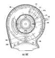 FIG. 10A is a cutaway, partial perspective view of aninhaler10, according to some embodiments of the present invention. Adose container assembly20, including adose container disk30 and upper andlower airway disks40,50, is rotatably secured within theinhaler housing portions12,13. As described above with respect toFIGS. 3A and 3C, thedose container disk30, in some embodiments, has opposing upper and lower primary surfaces, a first row of circumferentially spaced apart dosecontainers30cat a first radius and a second row of circumferentially spaced apart dosecontainers30cat a second radius so that the first and second rows are concentric with respect to a center of thedisk30. Thedose containers30ccontain dry powder therein and are defined byapertures30a, which can be sealed bysealants36,37 over and under theapertures30a. In some embodiments, however, adose container disk30 may have a solid bottom with one sealant overlying dose container apertures, as would be understood by those skilled in the art.