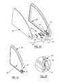 Connection is made fromwindow92 by aharness127. Forwindows92 that are movable, aharness127 is provided for attachment between the vehicle and the glass.