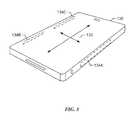 FIG. 3 illustrates an examplemobile client system130. This disclosure contemplatesmobile client system130 taking any suitable physical form. In particular embodiments,mobile client system130 may be a computing system as described below. As example and not by way of limitation,mobile client system130 may be a single-board computer system (SBC) (such as, for example, a computer-on-module (COM) or system-on-module (SOM)), a laptop or notebook computer system, a mobile telephone, a smartphone, a personal digital assistant (PDA), a tablet computer system, or a combination of two or more of these. In particular embodiments,mobile client system130 may have atouch sensor132 as an input component. In the example ofFIG. 3,touch sensor132 is incorporated on a front surface ofmobile client system130. In the case of capacitive touch sensors, there may be two types of electrodes: transmitting and receiving. These electrodes may be connected to a controller designed to drive the transmitting electrodes with electrical pulses and measure the changes in capacitance from the receiving electrodes caused by a touch or proximity input. In the example ofFIG. 3, one ormore antennae134A-B may be incorporated into one or more sides ofmobile client system130.Antennae134A-B are components that convert electric current into radio waves, and vice versa. During transmission of signals, a transmitter applies an oscillating radio frequency (RF) electric current to terminals ofantenna134A-B, andantenna134A-B radiates the energy of the applied the current as electromagnetic (EM) waves. During reception of signals,antennae134A-B convert the power of an incoming EM wave into a voltage at the terminals ofantennae134A-B. The voltage may be transmitted to a receiver for amplification.