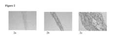 FIGS. 2 and 3 illustrate the difference in thickness, collagen and elastin quantity and distribution between the pleura and peritoneum tissues.FIGS. 2a, 2b, and 2cillustrate pleura tissue, andFIGS. 3a, 3b, and 3cillustrate peritoneum tissue.