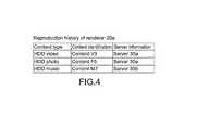 The reproductioncontent judgment unit52 shown inFIG. 3 judges whether there is a reproduction history of contents belonging to “HDD video” in therenderer20a(Step125). The table shown inFIG. 4 is stored in the reproduction contenthistory management unit51, and the content V3and theserver30aare specified based on the table (Step126).