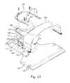 Preferably, the support surface fixation means129 of thefixation surface7 correspond to fixation means126 of the bottom plate. The fixation means of the bottom plate and the corresponding fixation means of the support fixation surface are selected from the group comprising: rivets, screws, bolts and nuts, and snap fit means connections and foam or plastic pads or parts that will fit in recesses in the support fixation surface or baseplate. Preferably, the fixation means126 of thebottom plate122 comprise snap fit connections and rivets. More preferably, said provided snap fit connections and rivets are provided in an intermittent pattern. In a preferred embodiment, the bottom plate is provided with 3 to 30, preferably 5 to 25, more preferably 10 to 20 fixation means.