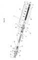 Acoupler35, havinggrooves23 extended axially on the periphery thereof, carries aseptum seal37 and an O-ring38 provides a seal between thecoupler35 and thehandle4, which is slid over thecoupler35.Other marker bands29 are disposed between thehandle4 and the sliding valve orslider10 and theforward stop11 is disposed over the distal end of thehandle4. O-rings24 provide a seal between theslider10 and thehandle4. An O-ring34 is disposed between theforward stop11 and thehandle4. It may also be seen that aheat shrink tubing39 covers thecoupler35 and an inner liner orsleeve36 is disposed within thecorrugated tube15. Moving distally, thecorrugated tube15 carrying thevertebrae16, the tendons orstaples18, the lockingring17 and thedistal tip6, is shown as well.
