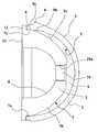 Thecup1 is a hemisphere with a relatively thin wall, having a convexproximal face3, seen better inFIG. 4, of generally hemispherical shape, optionally with anchoringfins4, and a concavedistal face5 comprising a hemispherical slidingsurface5aextended by a cylindrical or slightly conicalannular retaining surface5bextending to aperipheral lip6.