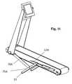 FIG. 10 showstreadmill60 in a level orientation, withcovers65 and underlying stepping boards removed.Support bar75A and declinesupport bar101A are mounted adjacent to the external surface offrame side rail111.