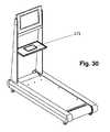 FIG. 30 is a perspective view of a treadmill with tablet computer dock.