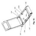 FIG. 16 is a top perspective view of the embodiment ofFIG. 15, with deck removed, further illustrating the treadmill suspension system. As described above, the deck is supported by thebellows153,154,155,156,157 and158.