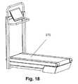 FIG. 18 shows an alternative embodiment, in which the internal components are not contained within the belt circumference, but instead they are mounted beneathbelt171, while still providing a full air suspension for the treadmill running and walking surface.FIG. 19 shows the embodiment ofFIG. 18, with the deck inclined, and with external covers removed to show some of the internal components. Thebelt motor181 and thecompressor182 are now visible.