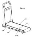 FIG. 18 is a perspective view of a treadmill embodiment with components positioned below the belt.