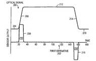 FIG. 8C shows similar modeledoptical signal235, which now includes a reduced background region aftertransition237. Thetransition regions236,237, and238 can be resolved using the firstderivative signal235A, which exhibits peaks236A,237A, and238A.