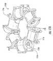 FIG. 18G illustrates the routing of thewire1862 from the newly wound end bobbin element to an adjacent bobbin element. Note that both bobbin elements shown include atransition feature1863 comprised of a protrusion that includes a curved edge. This curved edge helps prevent damage to the wire as it is routed between adjacent bobbin elements. The adjacent bobbin element is then wound identically to that seen inFIG. 18F (i.e. with three (3) layers comprised of fifty-two (52) turns each. The remainingbobbin elements1810 are then similarly wound as illustrated inFIG. 18H.