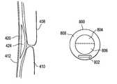 In essence, the compliant dynamic translating ortranslation zone802 functions as a truncation via a thicker region in a particular shape that may not only be tailored to eyelid geometry, but also conforms as do the dynamic stabilization zones described above. By conforming to the eye and lid shapes of an individual, the localized pressures are reduced, compared to a static translation zone, while maintaining the translational force exerted upon the lens. In other words, the compliantdynamic translation zone802 is a truncation that gives upon a certain amount of pressure thereby providing balance between movement and comfort. It is important to note; however, that the complaintdynamic translation zone802 may comprise any suitable shape and/or geometry and whose position may vary depending on the desired design. Preferably, the compliantdynamic translation zone802 is positioned in the inferior portion of theperipheral region808.FIGS. 11 and 12 illustrate a single prior art contact lens, in two views, with a thicker truncated edge. This prior art lens may be replaced with the compliant dynamic translation zone of the present invention.