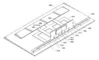 FIG. 15 shows a second configuration, in which the two sets ofsignal lines1404 and1405 communicate respectively with different memory modules. In this configuration,connector1402 receives twomemory modules1430 and1431.First memory module1430 is positioned toward one end ofconnector1402, itstabs1413 and1414 mating respectively withreceptacles1421 and1422.Tab1412 ofmemory module1430 is unused, but can optionally be received by an outermost connector receptacle whose contacts are unused.