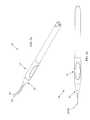 In embodiments, thetip20 and/or the hand-piece15 is provided with an actuating mechanism that selectively moves theneedles45,50 between the first position and the second position. In one example, the actuating mechanism comprises awedge90 that moves relative to and against theneedles45,50 when the user squeezes thegrips35,40 between their finger and thumb. A motion produced by the squeezing action of thegrips35,40 may be conveyed to thewedge90 by one or more suitable elements, which may include but are not limited to any one or more of cams, levers, inclined surfaces, gears, etc. When the user releases the squeezing force, thewedge90 may be resiliently urged back to its initial position, such that theneedles45,50 automatically return to the first position.