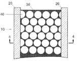 BRIEF DESCRIPTION OF THE DRAWINGSFIG. 1 is a top plan view of the partially laminatedfilm10 showing the two strips of adhesive20 adhering the edges of thetop film12 to the edges of thebottom film14 which are illustrated inFIG. 4. Also shown is a honeycomb pattern of adhesive30 with the resultantcircular voids40.