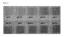 FIG. 3 is a photograph of a Post-Op sample dyed with GJM-514, illustrating changes in colour of the dye in response to solution changing pH along a pH unit interval scale.