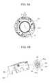 Referring toFIGS. 4, 5B, and 5C,base frame53 has a cylinder-like shape.Base frame53 integrally includescylindrical sidewall531 andpartition532 which is in an annular-plate shape and disposed in the middle ofsidewall531 in the direction of the optical axis.Partition532 extends substantially perpendicular to the optical axis.Partition532 has an opening in the center thereof. Adjustment holes53aare formed insidewall531 ofbase frame53, passing throughsidewall531. Adjustment holes53aare lengthened in the direction of the optical axis. In the present embodiment, adjustment holes53aare elongated holes having oval shapes, and the longitudinal directions of adjustment holes53aare the direction of the optical axis. In the present embodiment, threeadjustment holes53aincluding those not shown are evenly arranged in the circumferential direction ofsidewall531. It should be noted that the shapes, number, and arrangement of adjustment holes53aare not limited thereto and may arbitrary be determined. Here,adjustment hole53ais an example of a first through-hole, andsidewall531 andpartition532 ofbase frame53 constitute an example of the frame portion of the base frame.