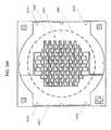 FIG. 21A is a photograph of a LED assembly including 16 LED die with a common encapsulating lens on a submount according to various embodiments described herein, andFIG. 21B is a photograph of the assembly ofFIG. 21A without the encapsulating lens.
